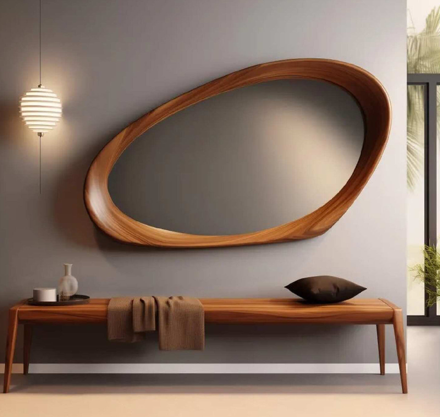 Aura Wall Mirror radiates subtle elegance with its soft, rounded form and refined frame. Designed to reflect both light and style, it adds a serene, airy presence to any space. Perfect for contemporary interiors, Aura enhances the ambiance with a gentle glow, blending functionality with timeless, minimalist beauty.