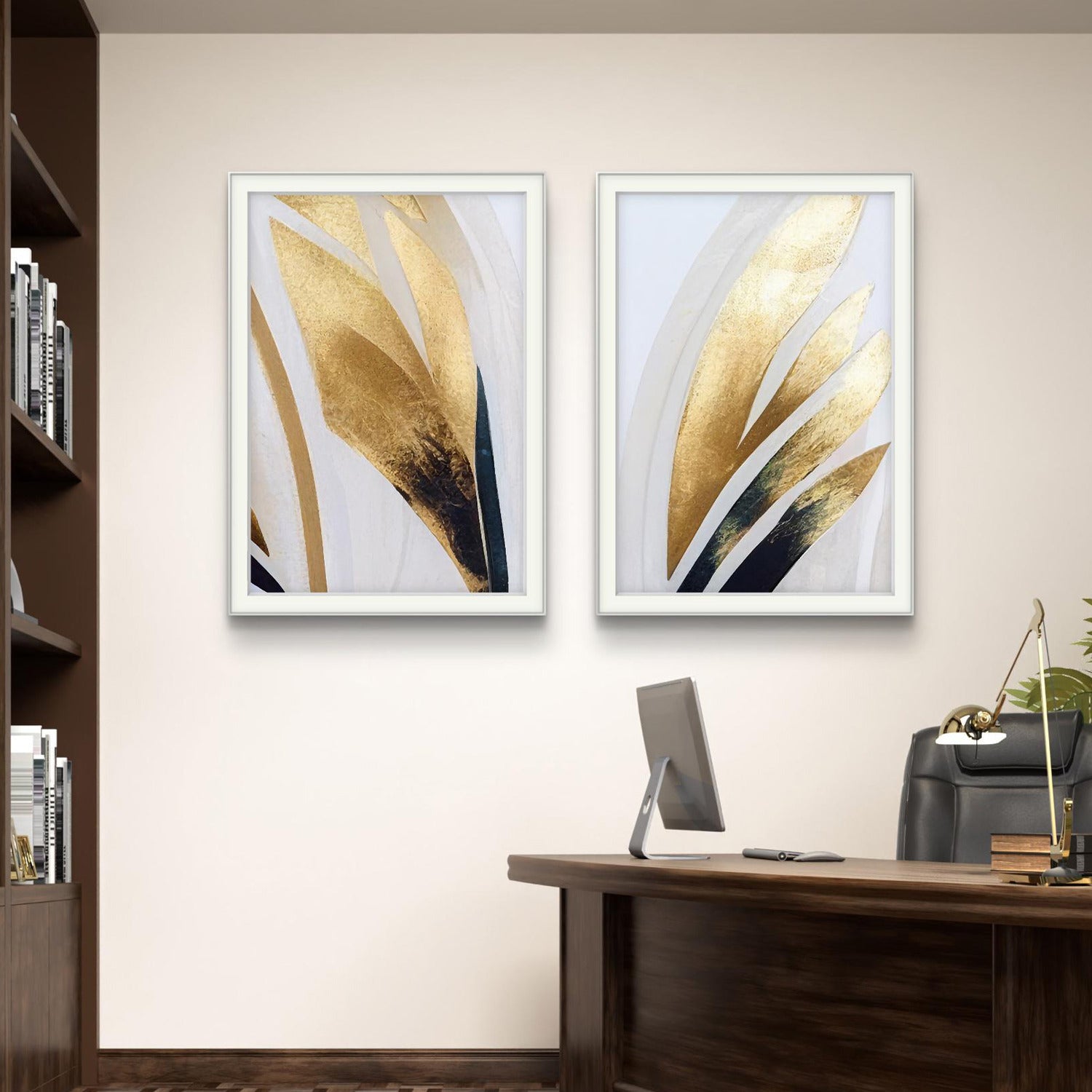Auric Leaves art frame radiates elegance through its golden-toned foliage design. Delicate metallic hues blend with earthy textures, evoking warmth and natural luxury. Ideal for modern or classic interiors, it brings a sense of calm sophistication. This piece subtly reflects light, adding depth and charm to any room it adorns.