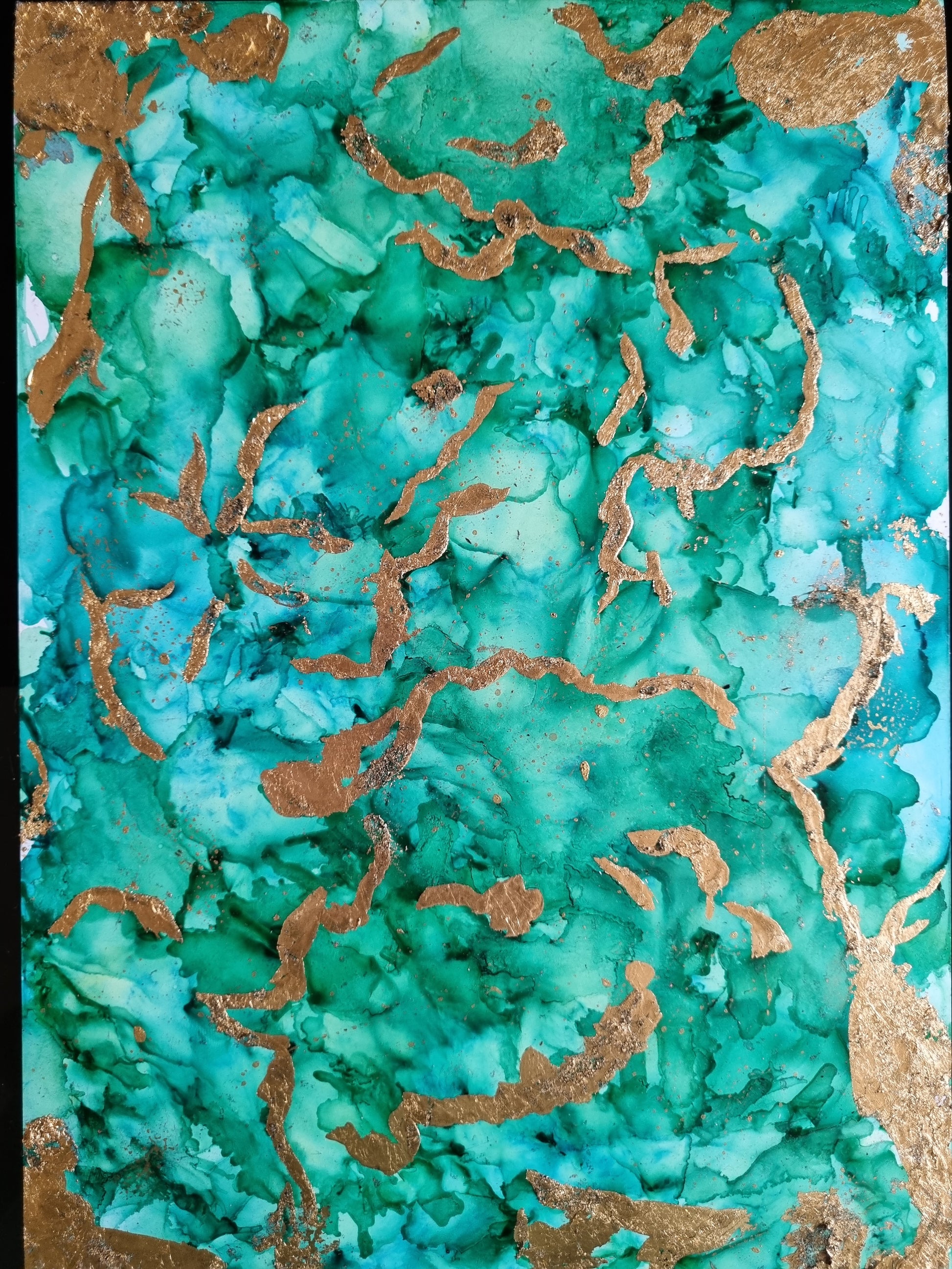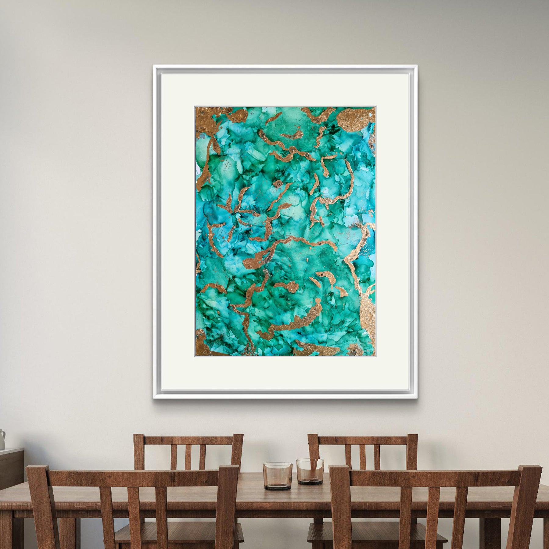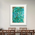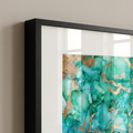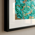 The Gilded Ocean Artframe brings the serenity of ocean waves blended with shimmering golden accents. Its emerald and turquoise tones flow gracefully, resembling tides kissed by sunlight. This masterpiece radiates luxury and tranquility, making it perfect for contemporary spaces. A true statement of elegance, it transforms walls into captivating seascapes.