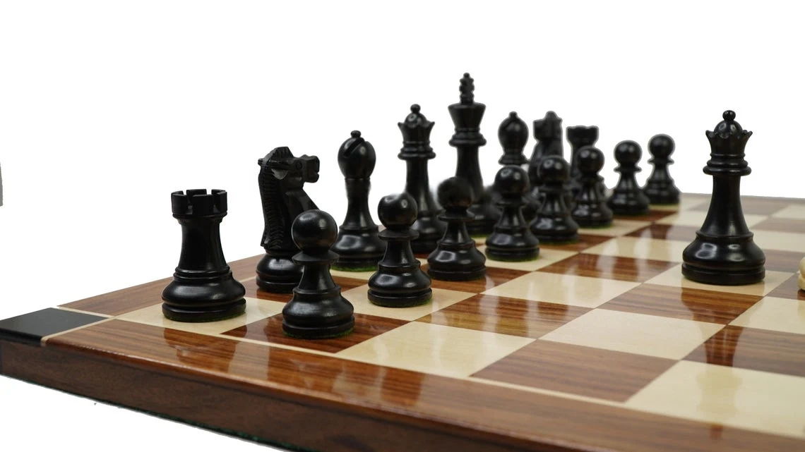 CHESS BOARD: 21 Inches, CHESS PIECES: 3.75" King Height Wooden Chess PiecesMaterial :