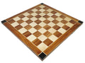 Chess Board has 2.25-inch playing squares. It is a heavy board with a solid feel and very well finished. Green felt feet on the base of the board will protect your table tops.