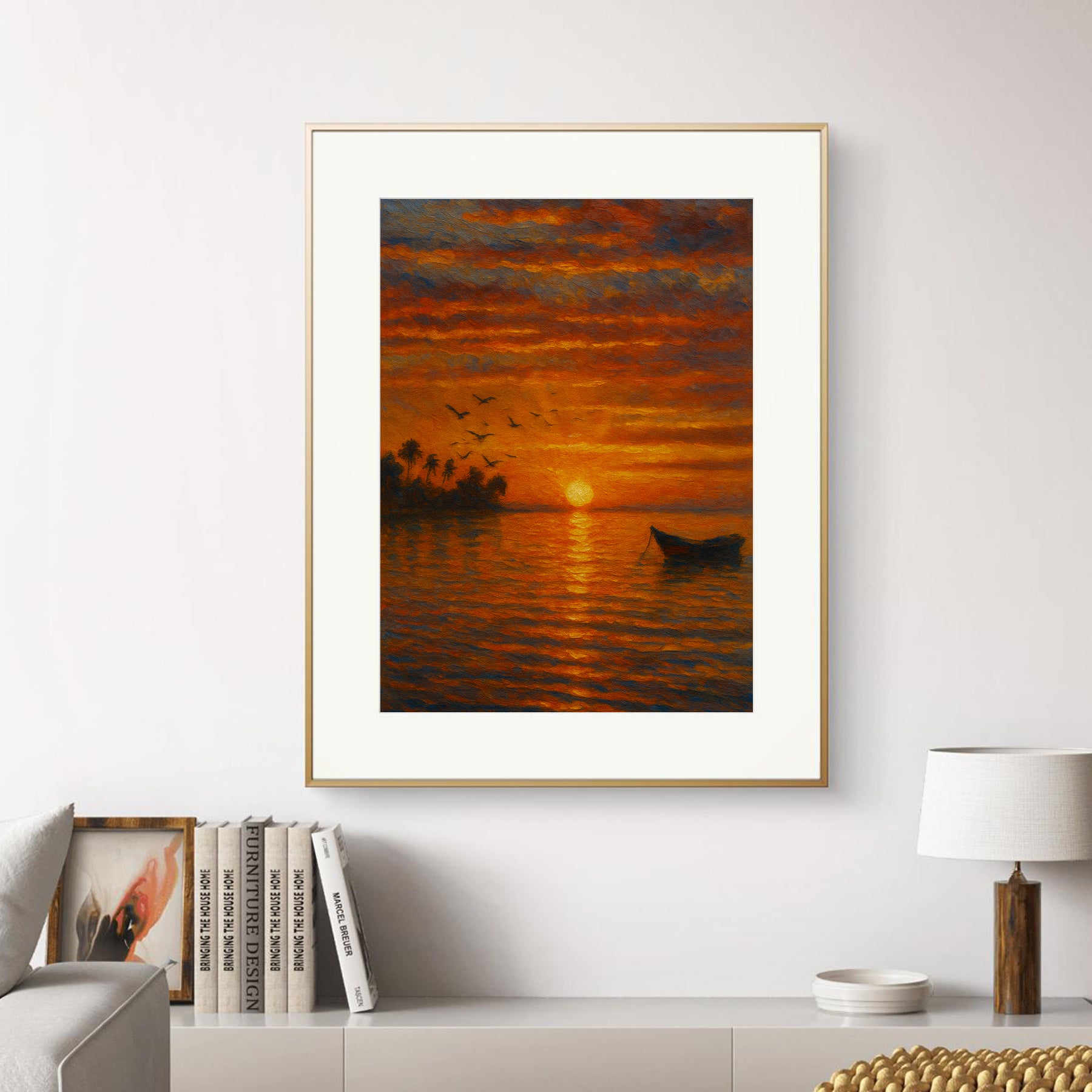 Sunset Art Frame captures the magical beauty of the setting sun, painting the sky with hues of gold, orange, and crimson. Symbolizing peace, hope, and new beginnings, it creates a calming and romantic ambiance. Perfect for home or office décor, this frame radiates warmth, serenity, and timeless natural elegance.