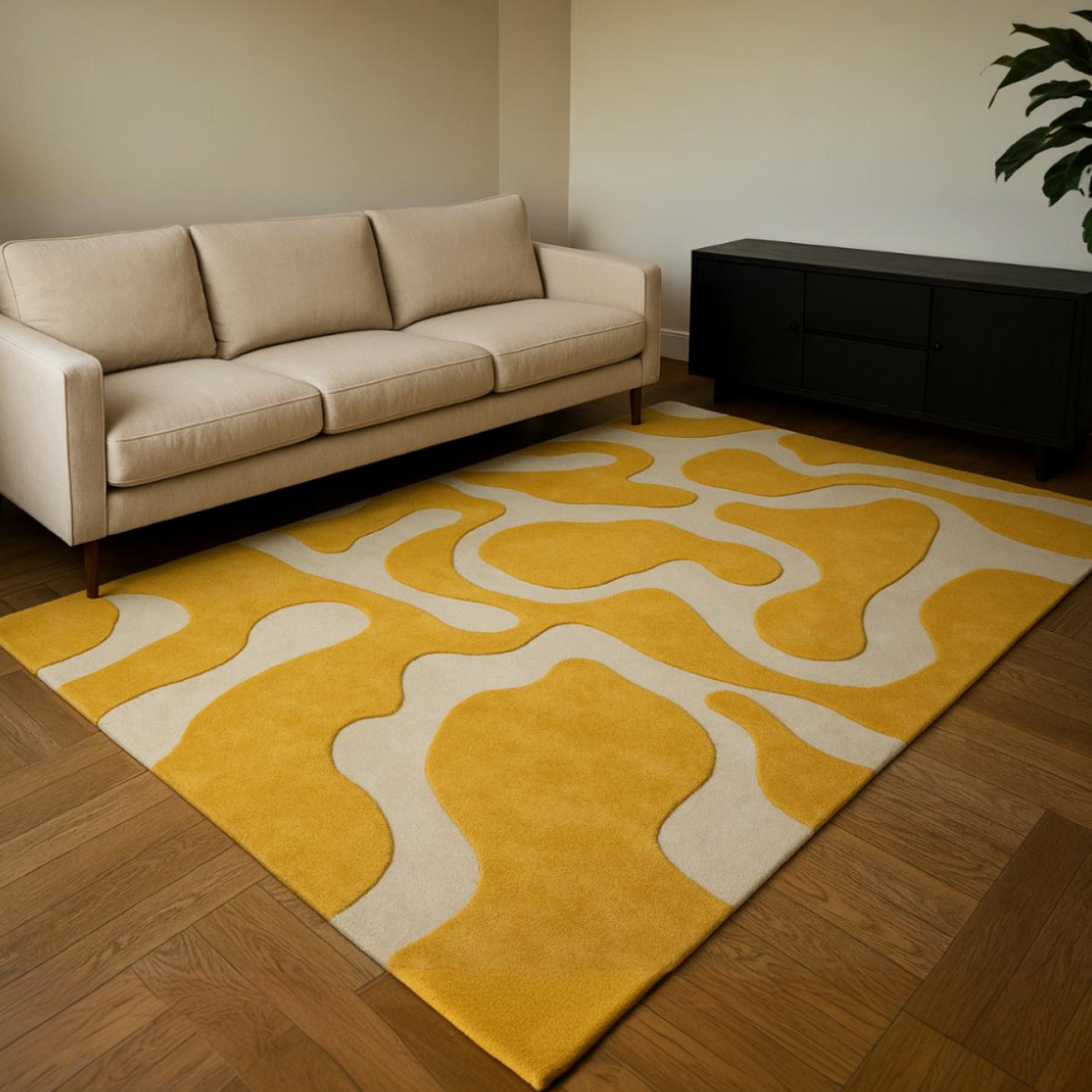Sunstone Path Rugs blend earthy elegance with radiant design. Inspired by sunrays and natural stone patterns, these rugs feature warm tones like ochre, rust, and gold. Their flowing lines evoke sunlight on winding trails, creating a grounded, serene atmosphere. Ideal for modern, boho, or earthy interiors seeking warmth and character.