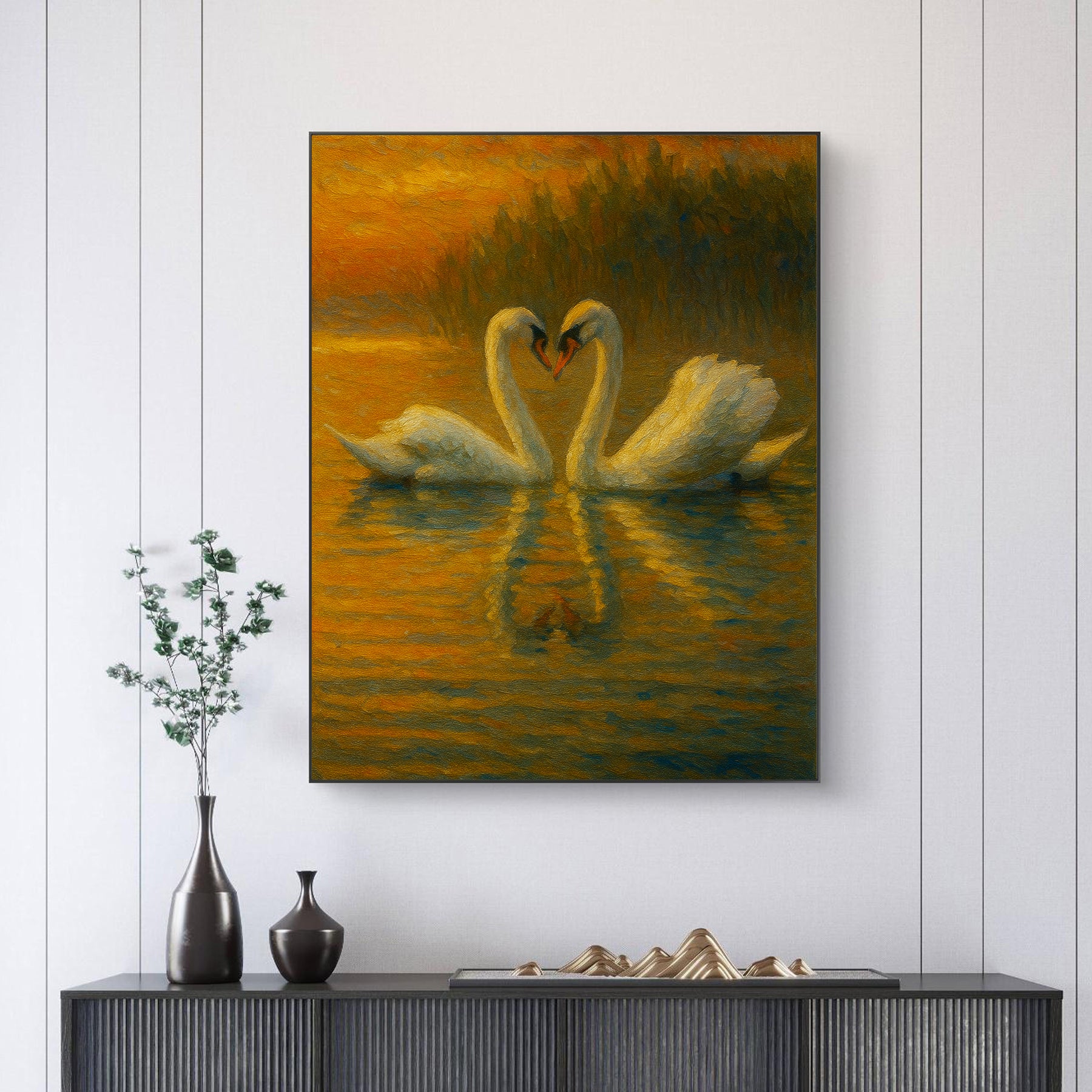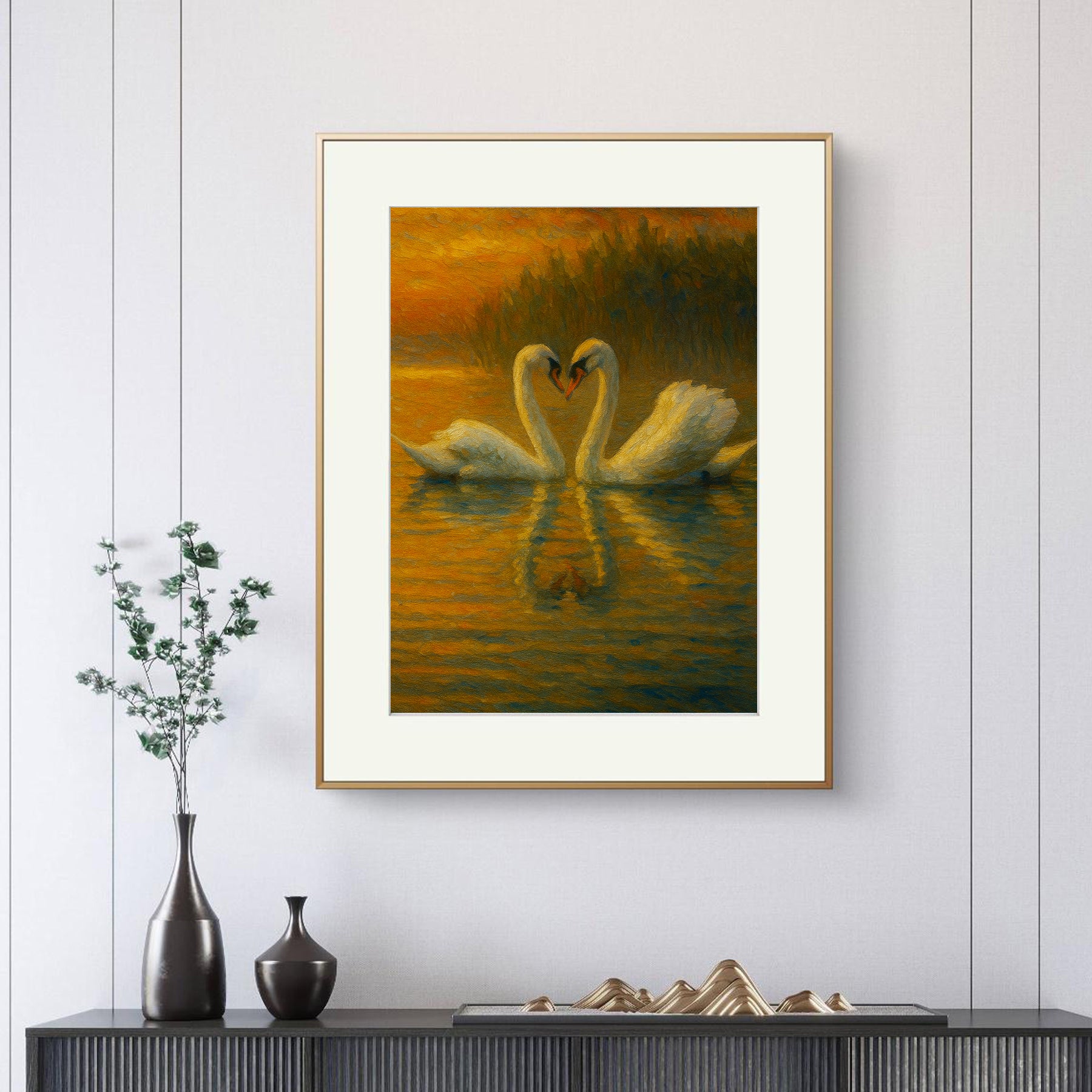 Swans Art Frame embodies love, purity, and elegance, showcasing the serene beauty of swans gliding gracefully across water. Symbolizing harmony, loyalty, and deep connection, it adds a touch of romance and peace to any space. Perfect for home décor, this frame radiates tranquility, charm, and timeless artistry inspired by nature.