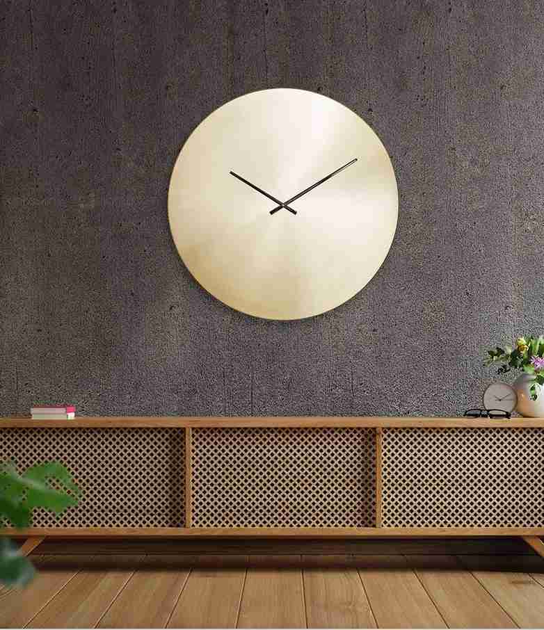 Handmade plain clock – Golden. This zero textured wall clock is the pick for those who love to keep it simple. This 29 inch stunner will dominate the wall you wish to highlight in your home or office. For those who love to keep it simple and elegant, this range of clocks are sure to blow your mind away!